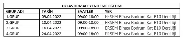 Eğitimler her bir grup için 8 saat sürecek olup aynı gün saat 18:00'da tamamlanacaktır.