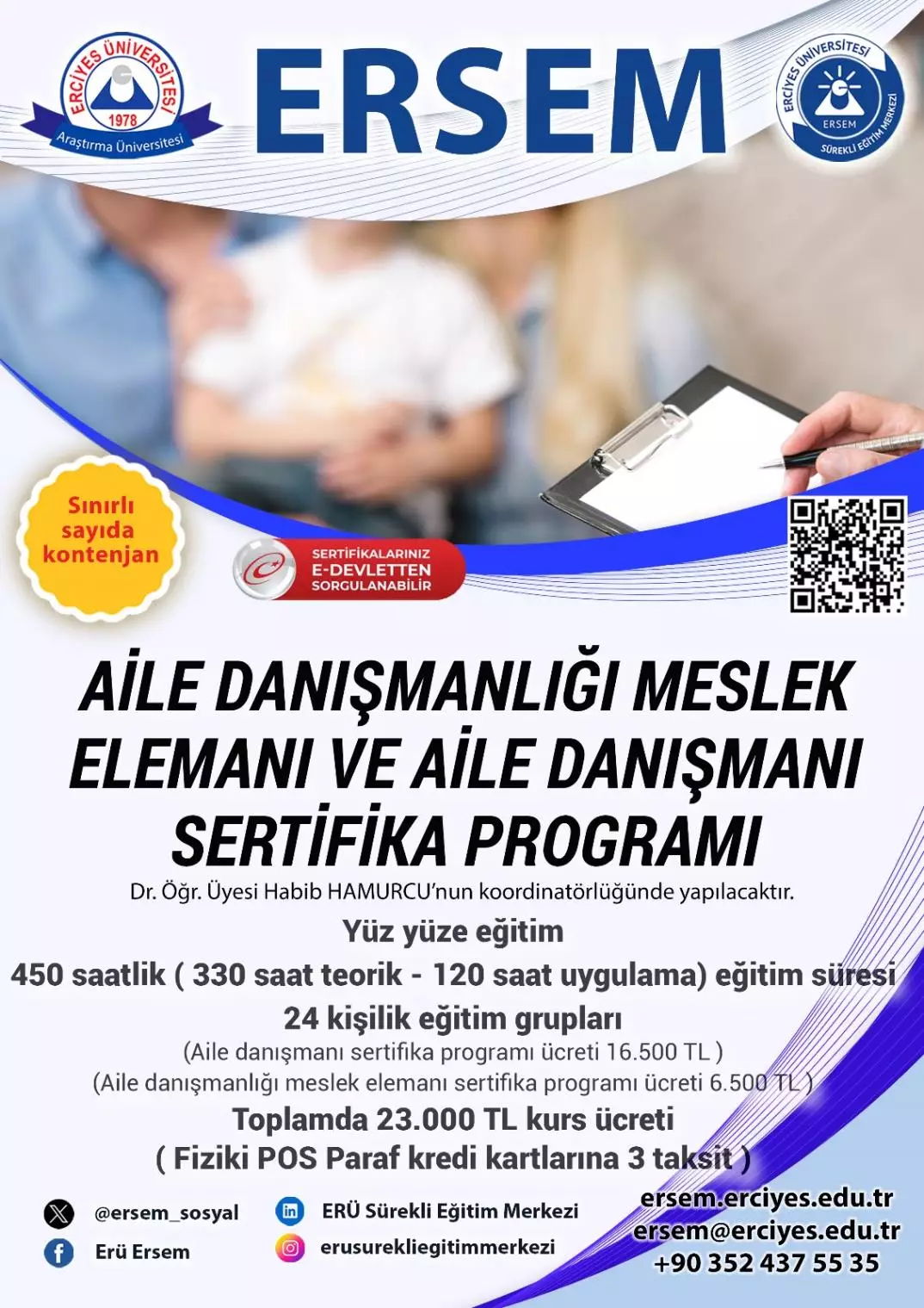 Eğitim Yeri: ERSEM (Erciyes Üniversitesi Sürekli Eğitim Merkezi)