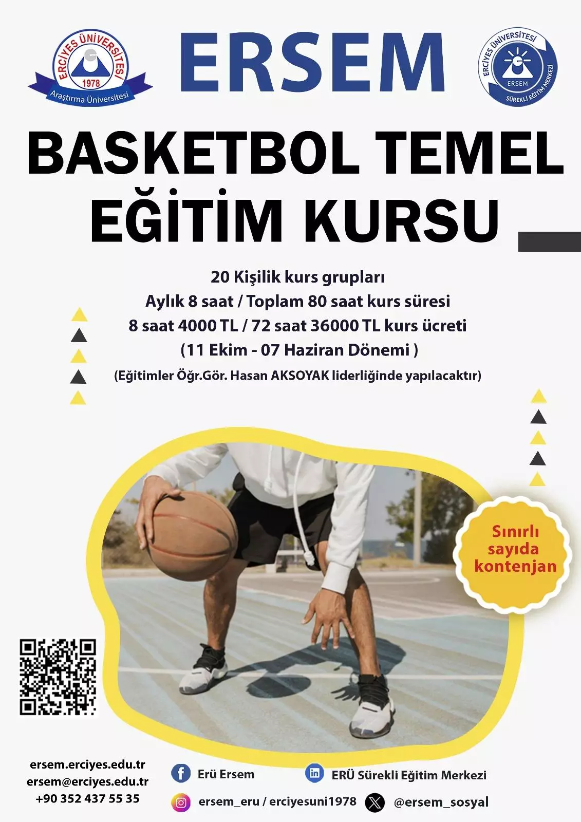 Eğitim Sorumlusu: Öğr.Gör. Hasan AKSOYAK (5 Kademe A Kategorisi Basketbol Antrenörü-Eski Milli Basketbolcu)