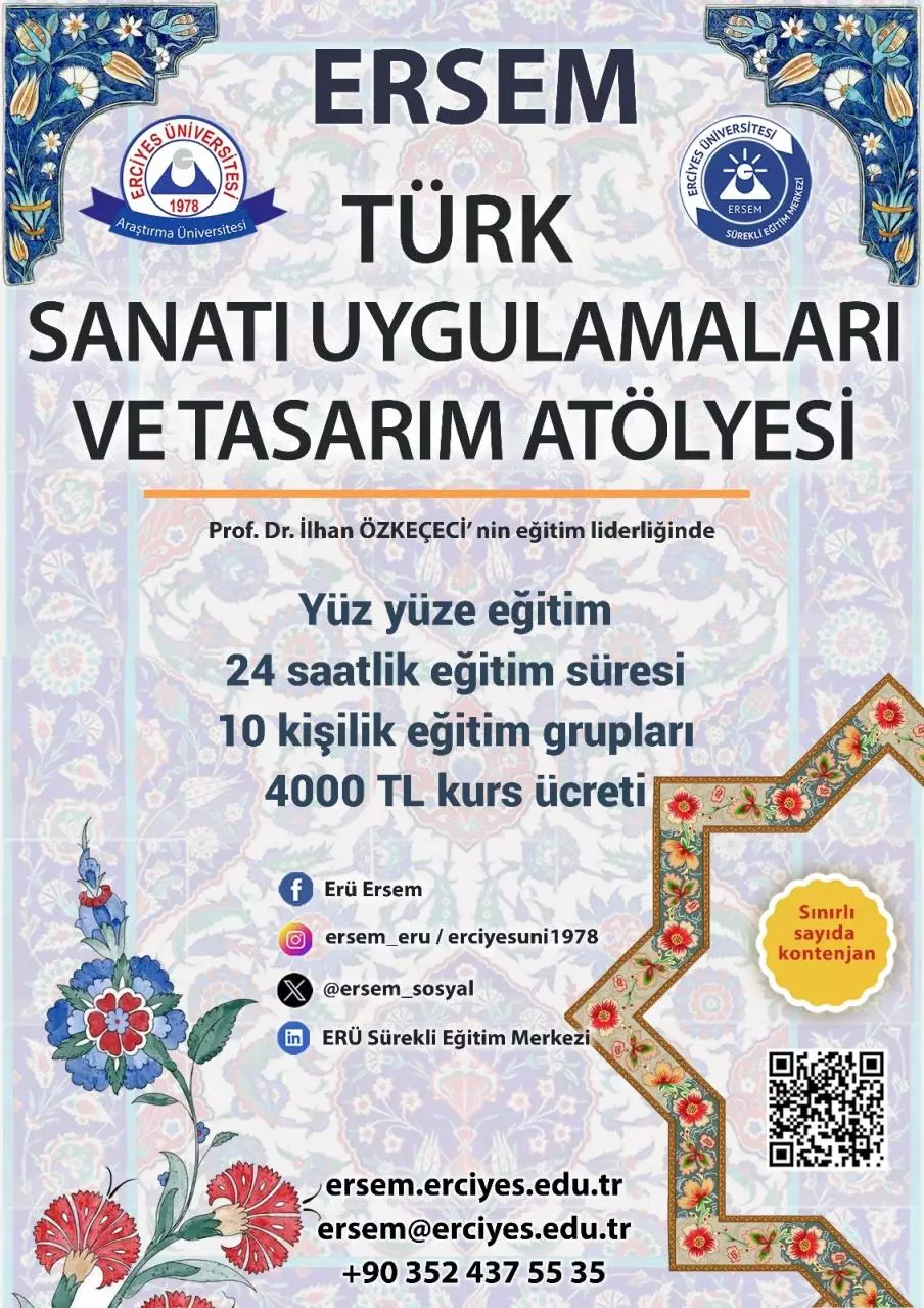 "Türk Sanatı Uygulamaları ve Tasarım Atölyesi" Türk kültürünün yüzyıllar boyunca ortaya koyduğu evrensel nitelikli eserlerinin estetik kaynağından beslenen, bir tasarım eğitim atölyesidir.